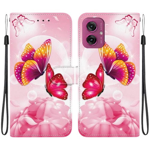 Funda de Cuero para Motorola Moto G55 con Dibujo de Colores y Textura de Cristal (Mariposas Rosas)