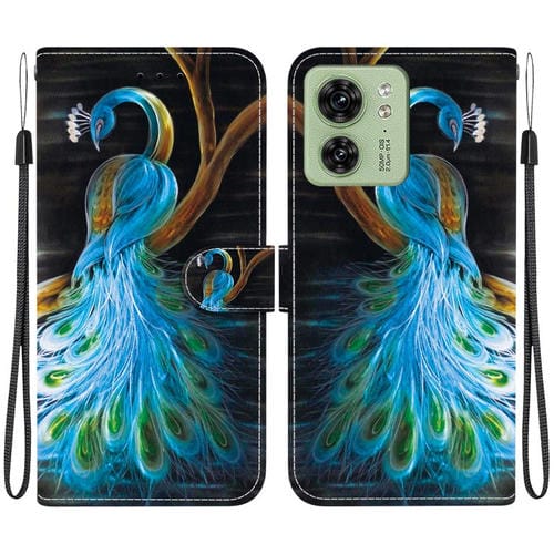 Funda de Cuero para Motorola Edge 40 Neo con Dibujo de Colores y Textura de Cristal (Pavo Real)