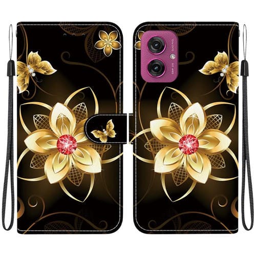 Funda de Cuero para Motorola Moto G55 con Dibujo de Colores y Textura de Cristal (Flor Dorada)