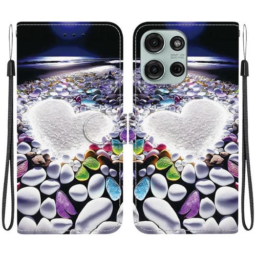 Funda de Cuero Motorola Moto G75 5G con Dibujo de Colores y Textura de Cristal (Corazón)