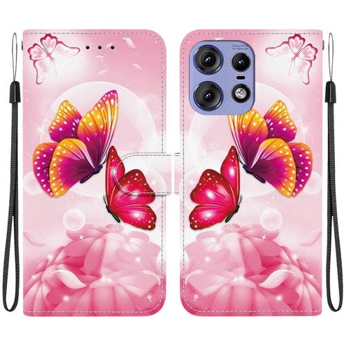 Funda de Cuero con Dibujo y Textura de Cristal para Motorola Edge 50 Pro (Mariposas Rosas)