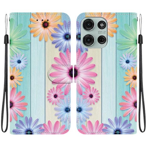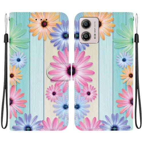 Funda de Cuero con Dibujo de Colores y Textura de Cristal para Motorola Moto G55 (Lotus)