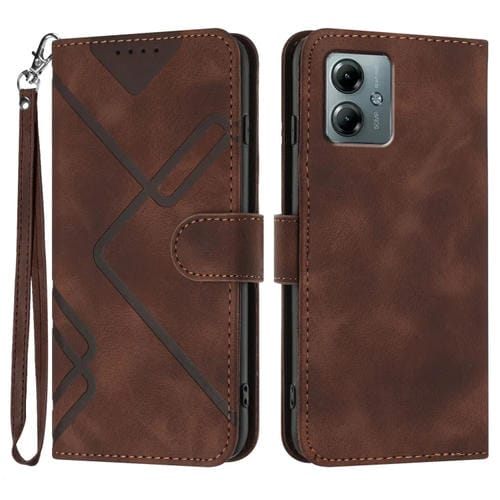 Funda de Cuero Motorola Moto G Play 2025 y G Power 2025 con Diseño de Líneas (Café)