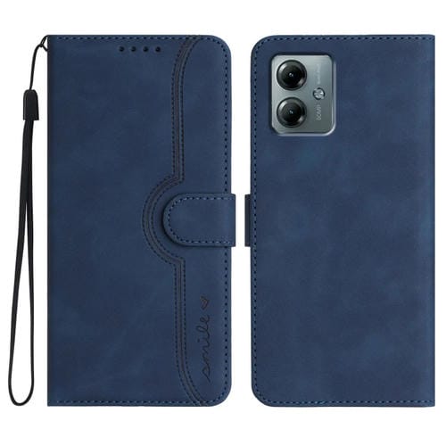Funda de Cuero con Diseño de Corazón para Motorola Moto G Play 2025 y G Power 2025 (Azul Real)