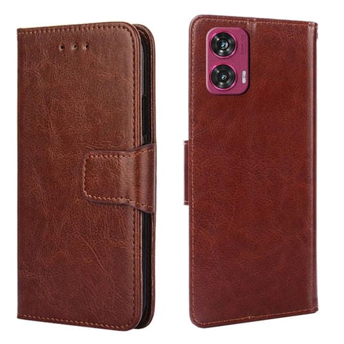 Funda de Cuero con Textura de Cristal para Motorola Edge 50 Fusion 5G (Marrón)