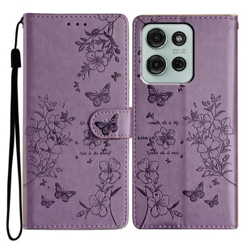 Funda de Cuero para Motorola Moto G75 5G con Mariposas y Flores (Morado)