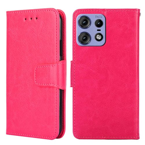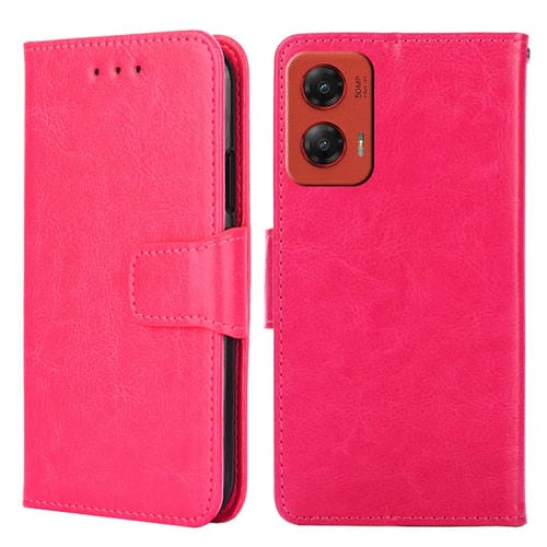 Funda de Cuero con Textura de Cristal para Motorola Edge 50 Fusion 5G (Rosa Rojo)