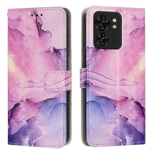 Funda de Cuero con Patrón Mármol para Motorola Edge 40/Edge 2023 (Rosa y Morado)