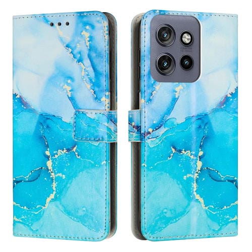 Funda de Cuero con Patrón Mármol para Motorola Moto S50 5G y Edge 50 Neo (Azul Verde)