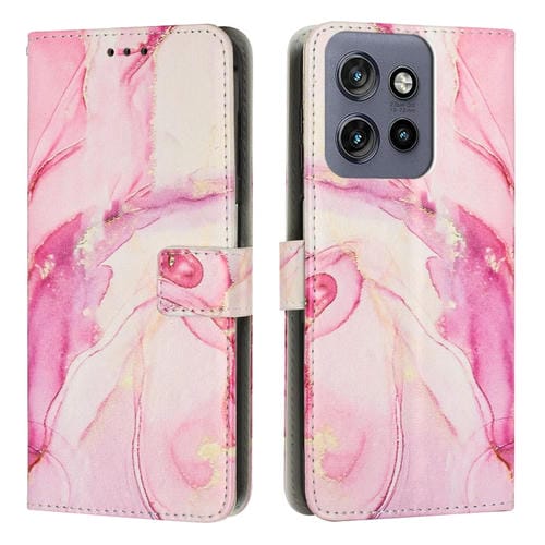 Funda de Cuero con Patrón de Mármol para Motorola Edge 50 Pro y Edge 50 (Oro Rosa)