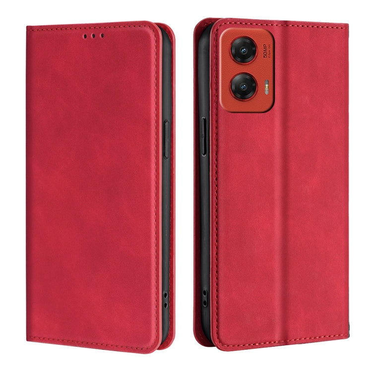 Funda de Cuero Magnética con Tacto de Piel para Motorola Moto G 5G (2024) (Rojo)