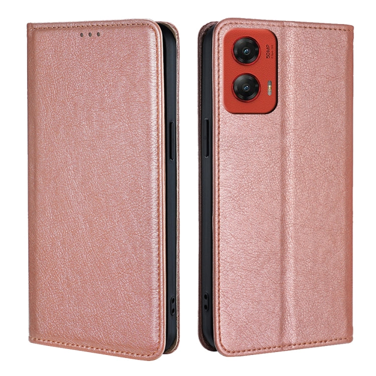 Funda de Cuero Magnética para Motorola Moto G Power 5G (2024) (Oro Rosa)