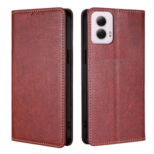Funda de Cuero Magnética para Motorola Moto G 5G (2024) con Acabado Brillante (Marrón)