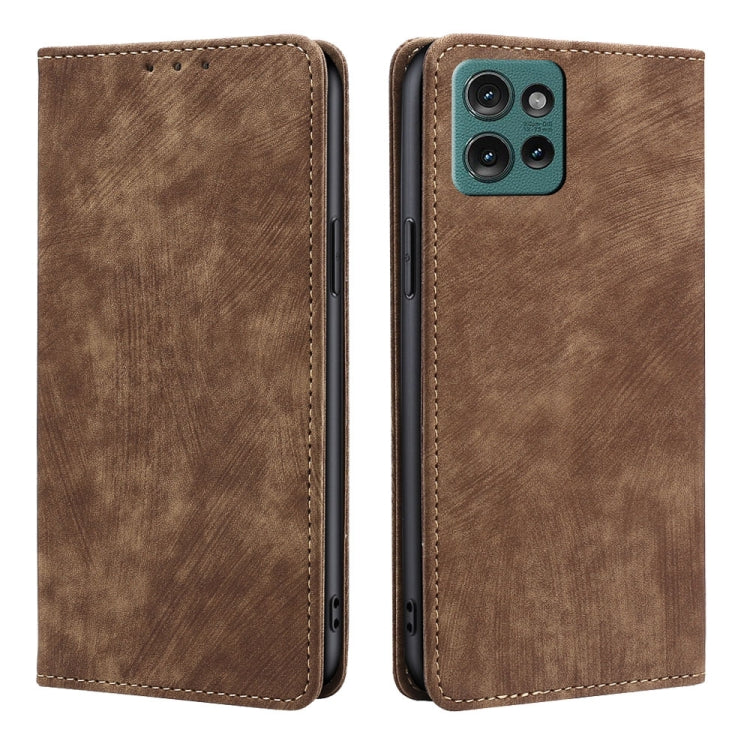 Funda de Cuero Magnética con Cepillo Antirrobo RFID para Motorola Edge 50 5G (Marrón)