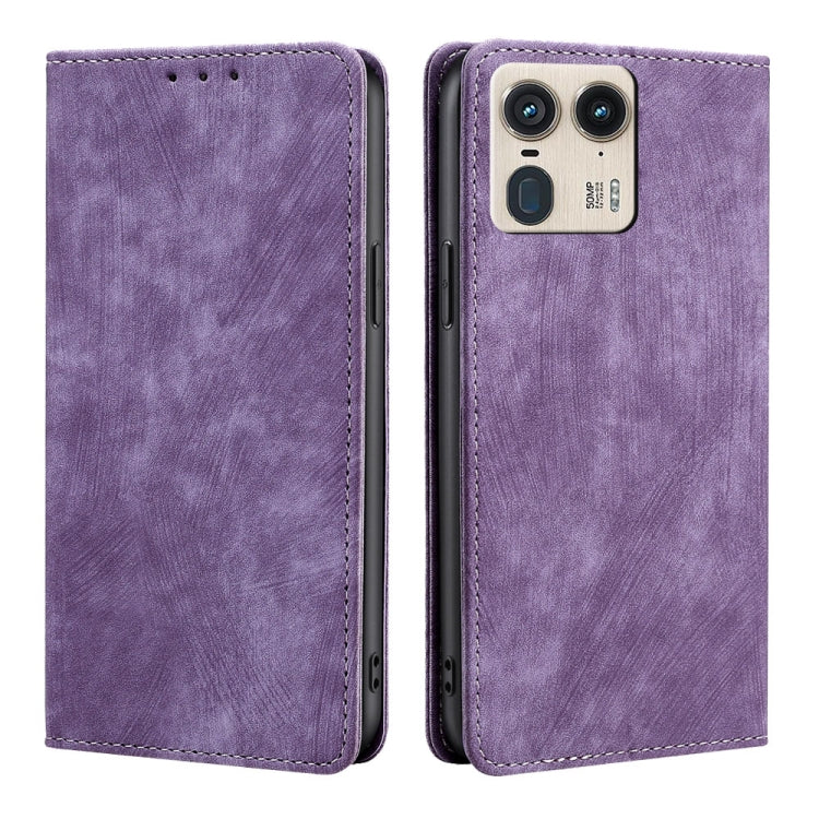 Funda de Cuero Magnética con Cepillo Antirrobo RFID para Motorola Edge 50 Ultra (Morado)
