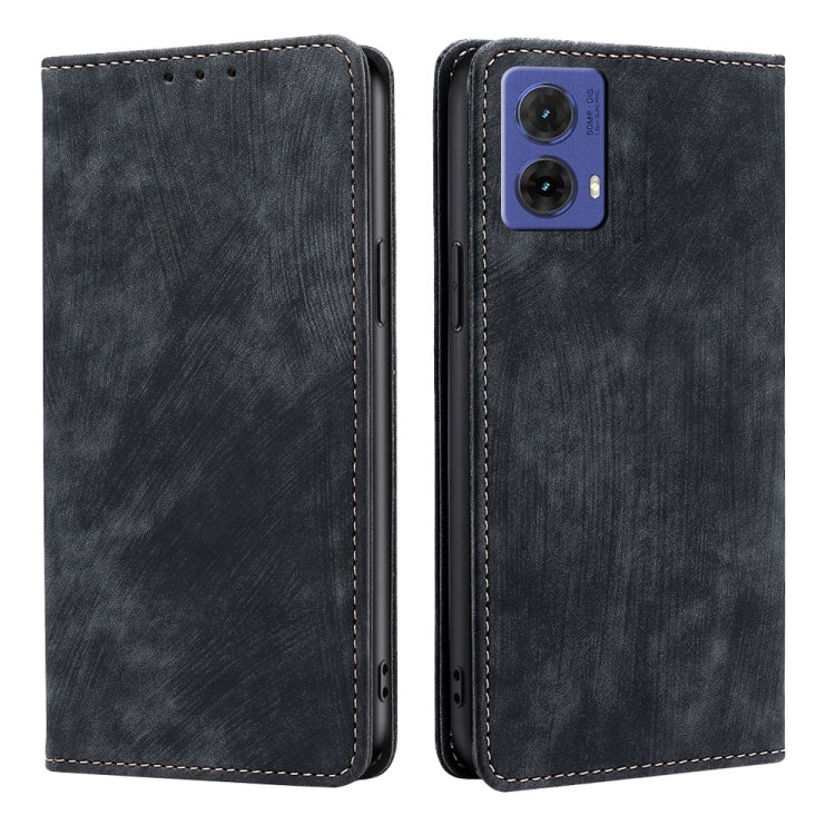 Funda de Cuero Magnética con Cepillo Antirrobo RFID para Motorola Moto G85 5G (Negro)