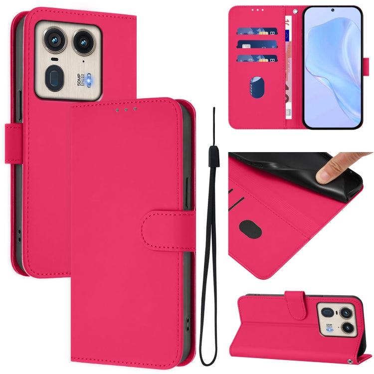 Funda de Piel Sintética con Cordón para Motorola Edge 50 Ultra/X50 Ultra (Rosa y Rojo)