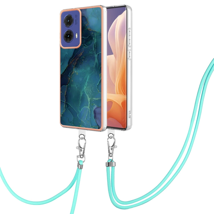 Estuche para Teléfono Motorola Moto G85 con Imd Doble Cara Galvanoplastia Mármol y Cordón (Verde)