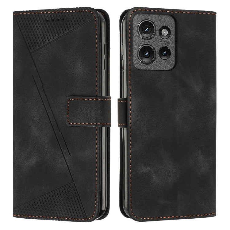 Funda de Cuero triangular para Motorola Edge 50 Dream con Cordón (Negro)