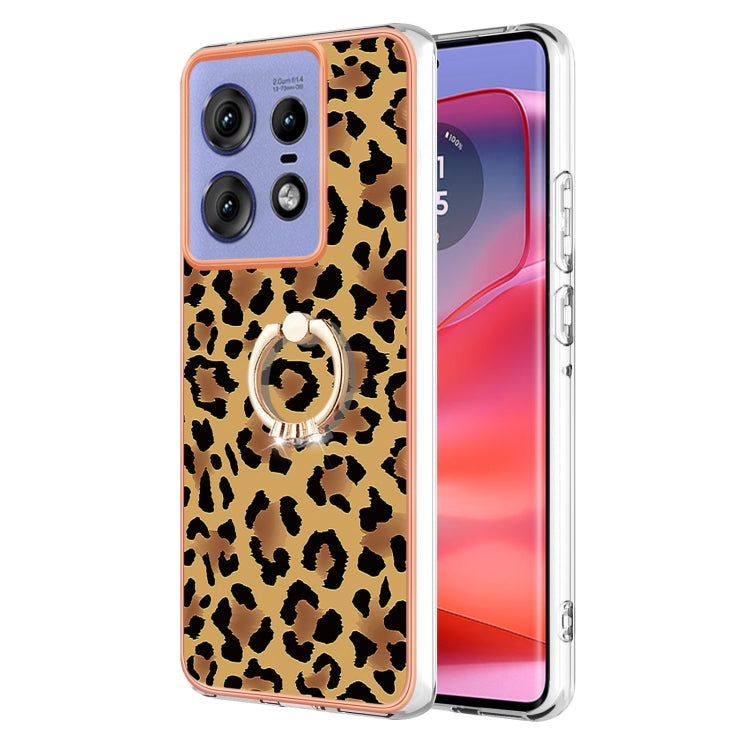 Estuche para Motorola Edge 50 Pro con Galvanoplastia IMD Doble Cara y Soporte para Anillo (Leopardo)
