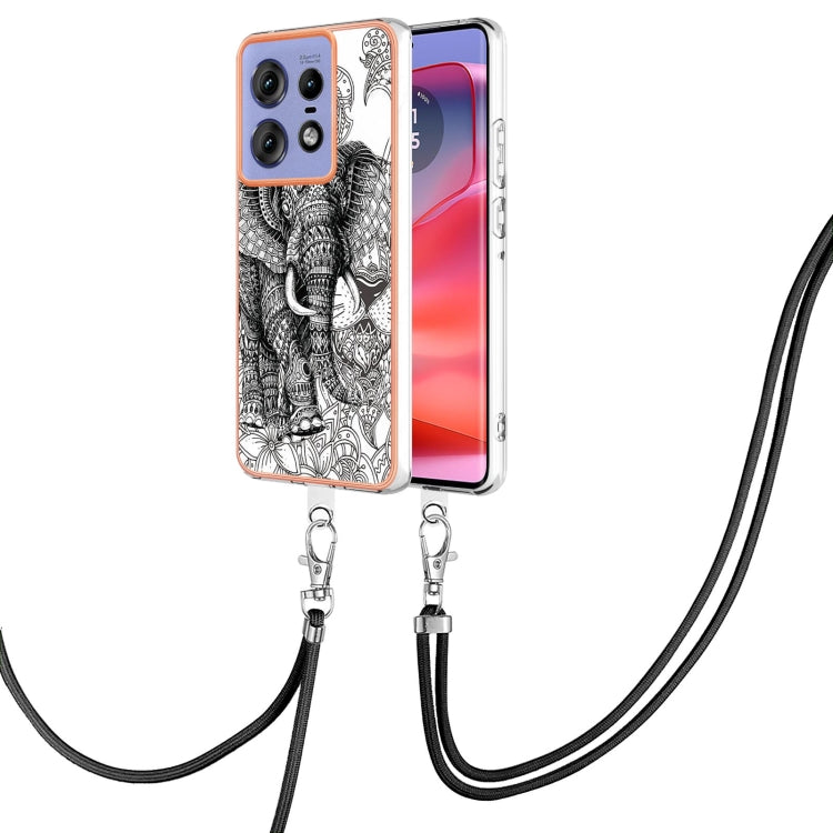 Estuche para Teléfono Motorola Edge 50 Pro con IMD Doble Cara Galvanizada y Cordón (Elefante Tótem)