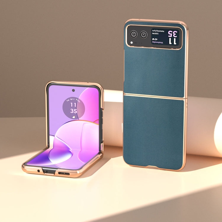 Funda para Motorola Razr 40 Nano Plating de Cuero Genuino Serie Xiaoya (Verde Oscuro)