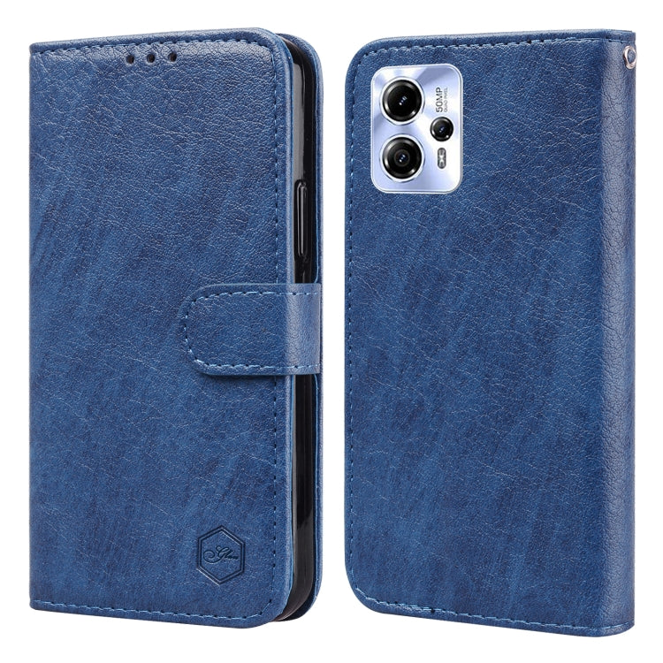 Funda para Motorola Moto E13 con Textura de Cuero Aceitado PU + TPU (Azul Oscuro)