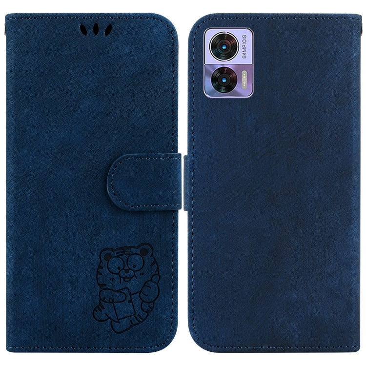 Funda para Motorola Moto S30 Pro 5G de Cuero con Relieve Little Tiger (Azul Oscuro)