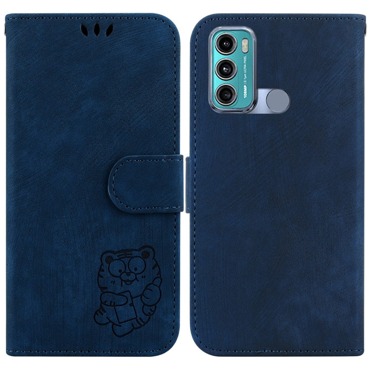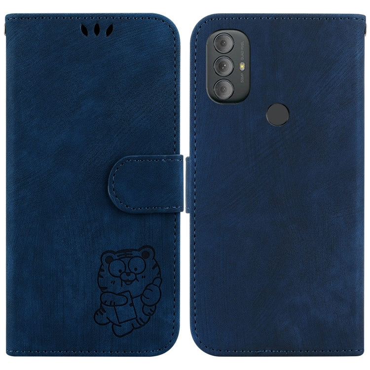 Funda de Cuero para Motorola Moto G22 Little Tiger en Relieve (Azul Oscuro)