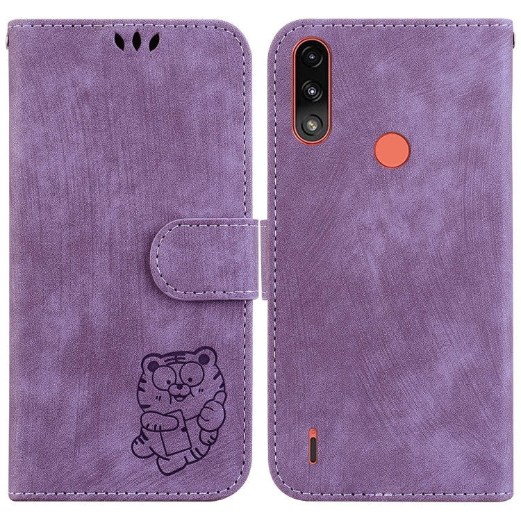 Funda de Cuero en Relieve para Motorola Moto E13 Little Tiger (Púrpura)