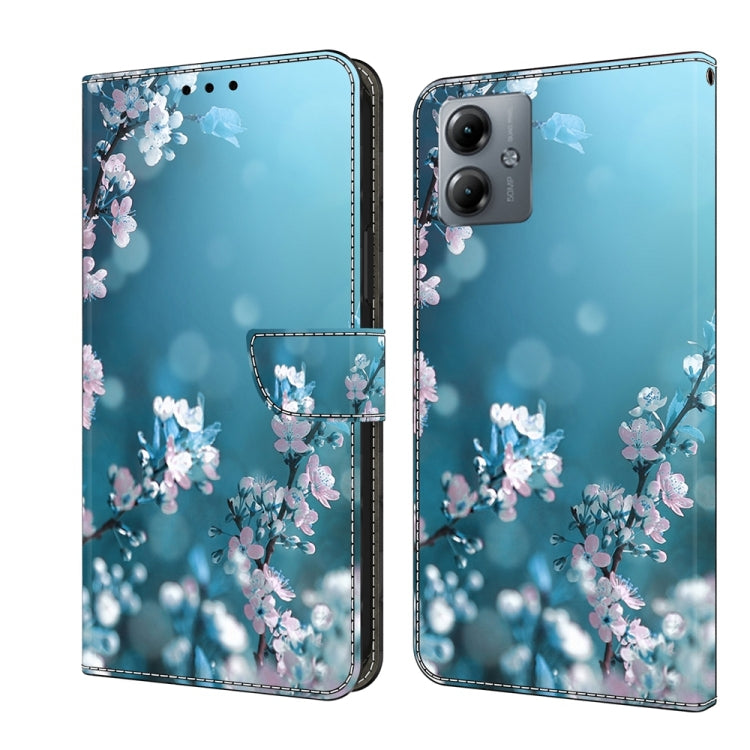 Funda Protectora de Cuero para Motorola Moto G14 Crystal 3D a Prueba de Golpes (Flor de Ciruelo)