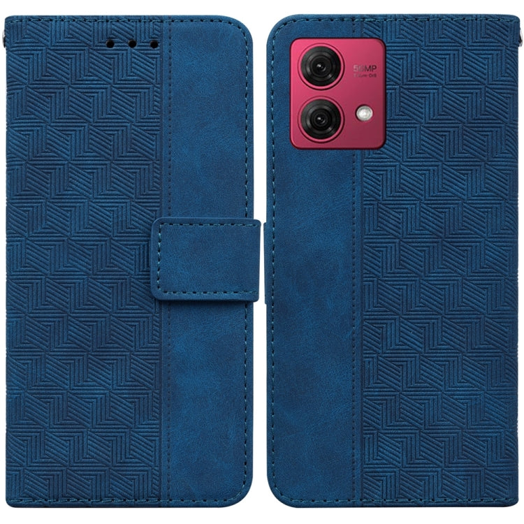 Funda de Cuero para Motorola Moto G84 con Relieve Geométrico (Azul)