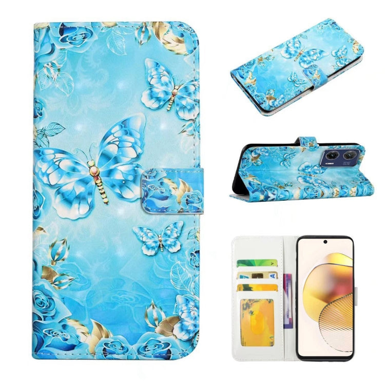 Funda de Cuero para Motorola Moto G73 con Dibujo 3D en Relieve al Óleo (Mariposas Azules)