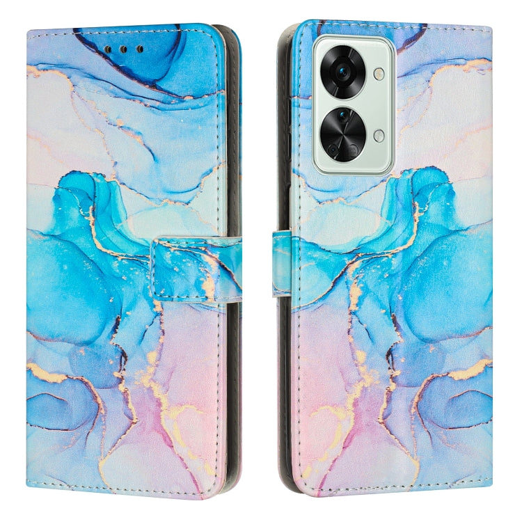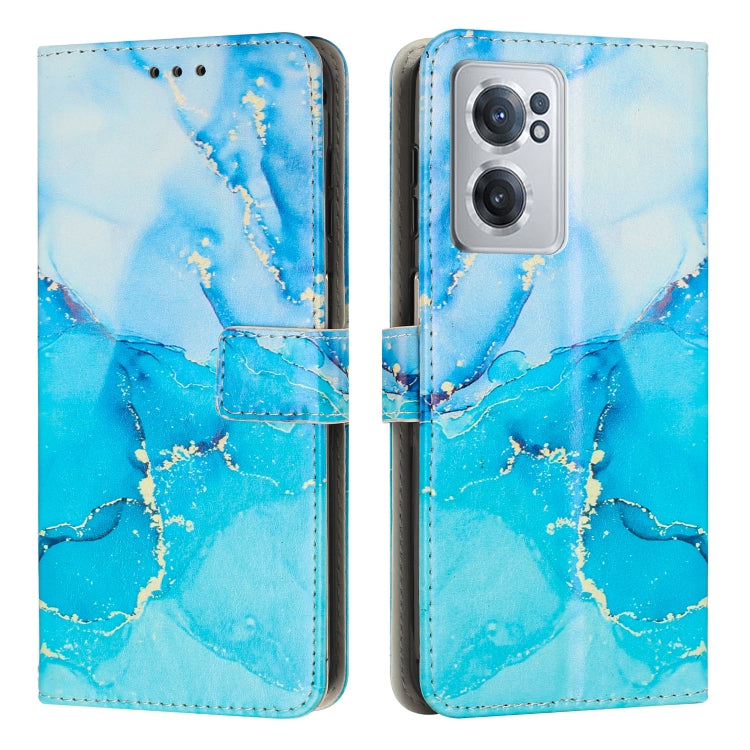 Funda de Cuero para OnePlus Nord 2T con Patrón de Mármol Pintado (Azul Verde)