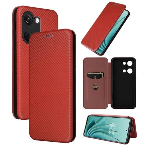 Funda de Teléfono OnePlus Ace 2V Cuero con Textura de Fibra de Carbono (Marrón)