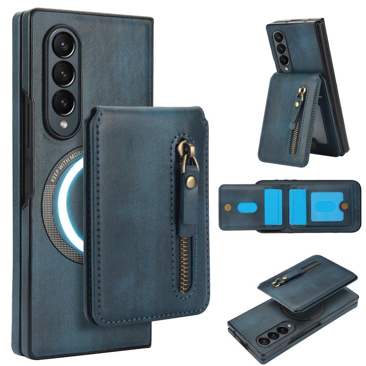 Funda de Cuero con Cremallera y Parte Trasera Magsafe Dividida Samsung Galaxy Z Fold4 (Azul)