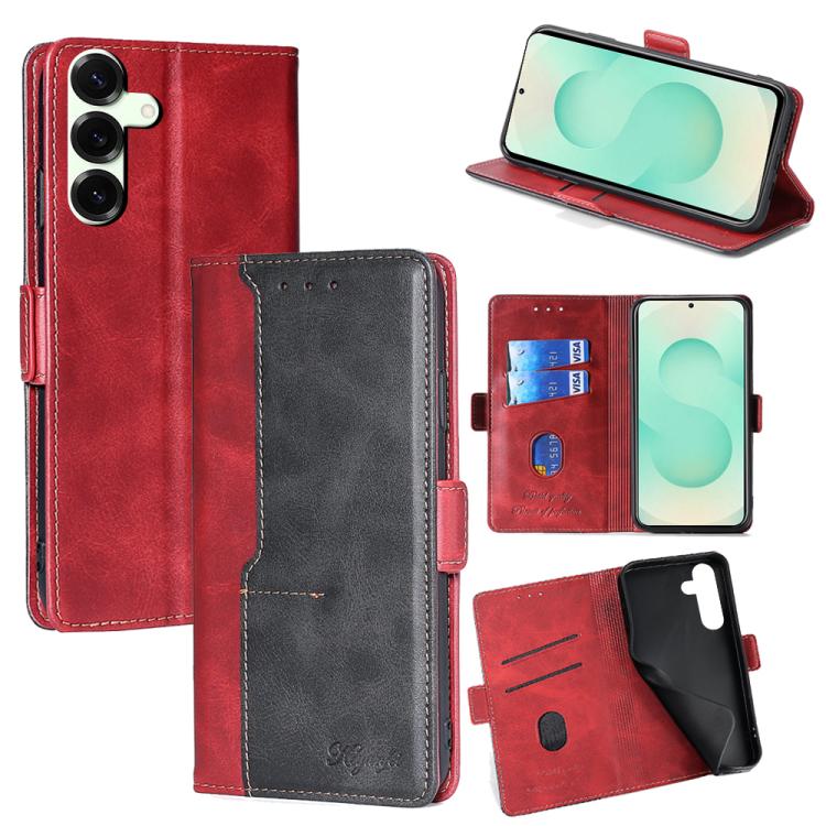 Funda de cuero con hebilla lateral en color de contraste para Samsung Galaxy S25 5G (rojo y negro)