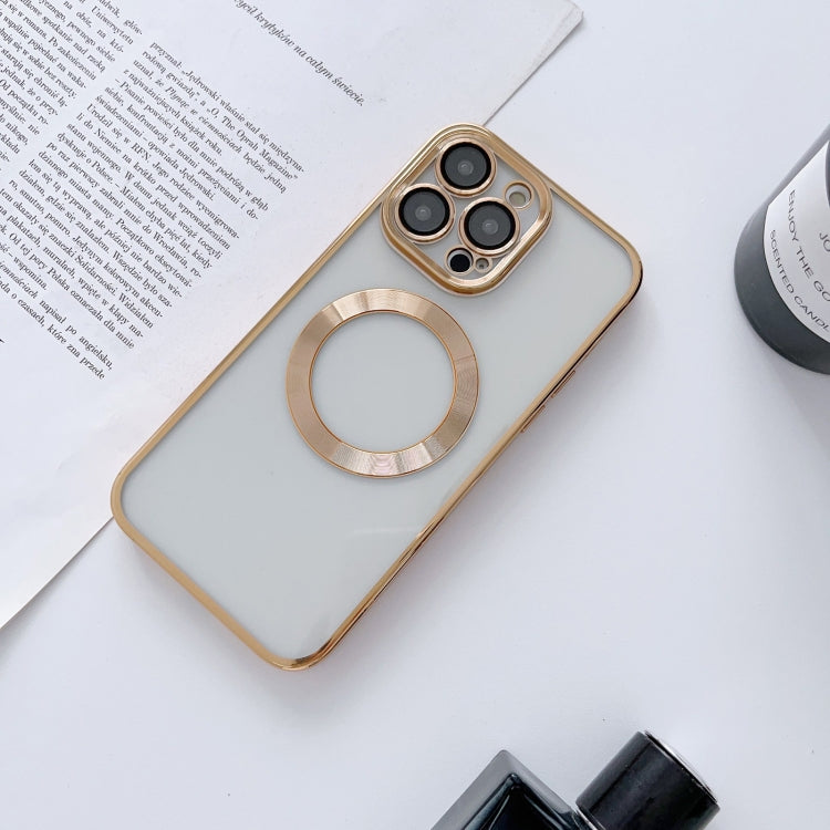 Caja de teléfono TPU magnética Magsafe para iPhone 13 Pro con filtro de polvo y Película de Lente (Oro)