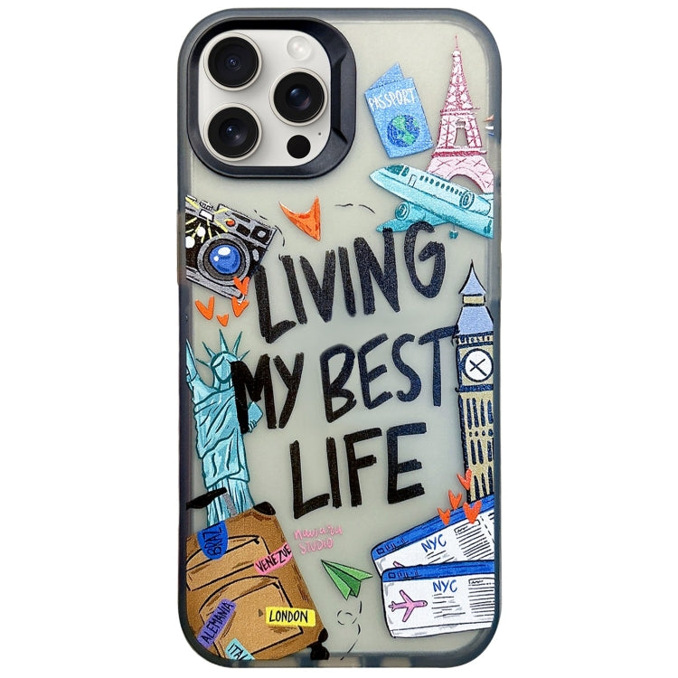 Funda para Teléfono iPhone 15 Pro Max TPU + PC con Pintura Colorida (Etiquetas de Viaje)