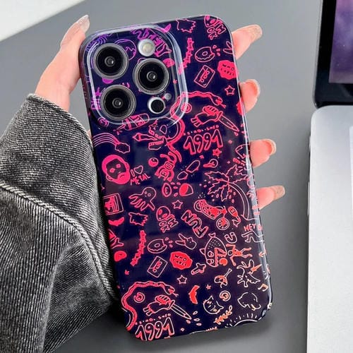 Pour iPhone 15 Pro Max Étui de téléphone à trou PC précis avec motif peint (graffiti rouge noir)