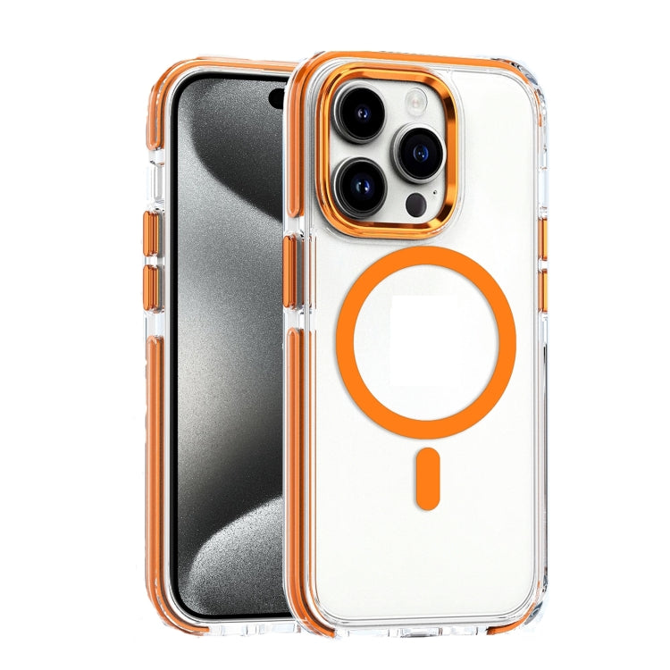 Pour iPhone 15 Pro Max Antichoc PC Clear Hybrid TPU MagSafe Phone Case (Orange)