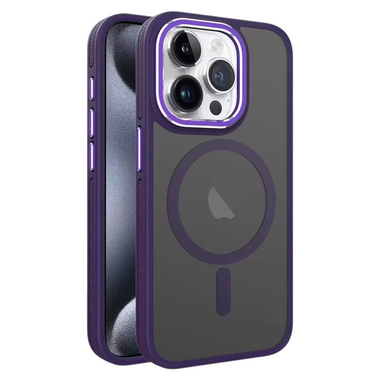 Pour iPhone 15 Pro Max Étui de téléphone magnétique MagSafe givré bicolore (violet)