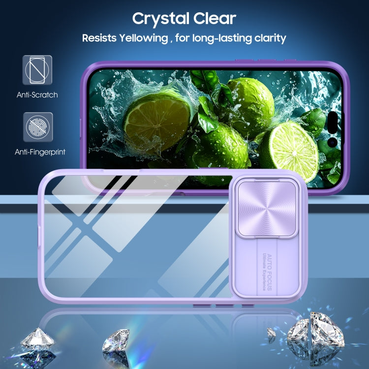 Estuche para Teléfono iPhone 16 Pro Max Sliding Camshield TPU Híbrido (Púrpura)
