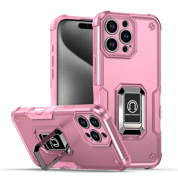 Funda Protectora para iPhone 16 Pro Max Antideslizante Prueba de Golpes con Soporte de Anillo (Rosa)