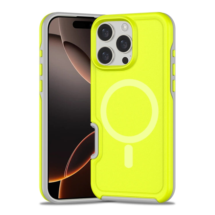 Funda híbrida TPU y PC iPhone 16 Pro protección Magsafe a prueba de golpes (Verde Fluorescente y Gris)