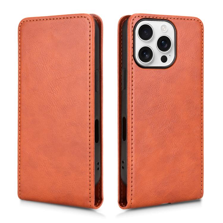 Funda de Cuero con Tapa Vertical Magnética para iPhone 16 Pro (Marrón)