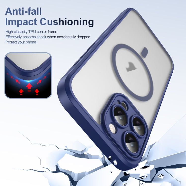 Funda para Teléfono Magsafe Translúcida Esmerilada con Botón Ai para iPhone 16 Pro Max (Azul)