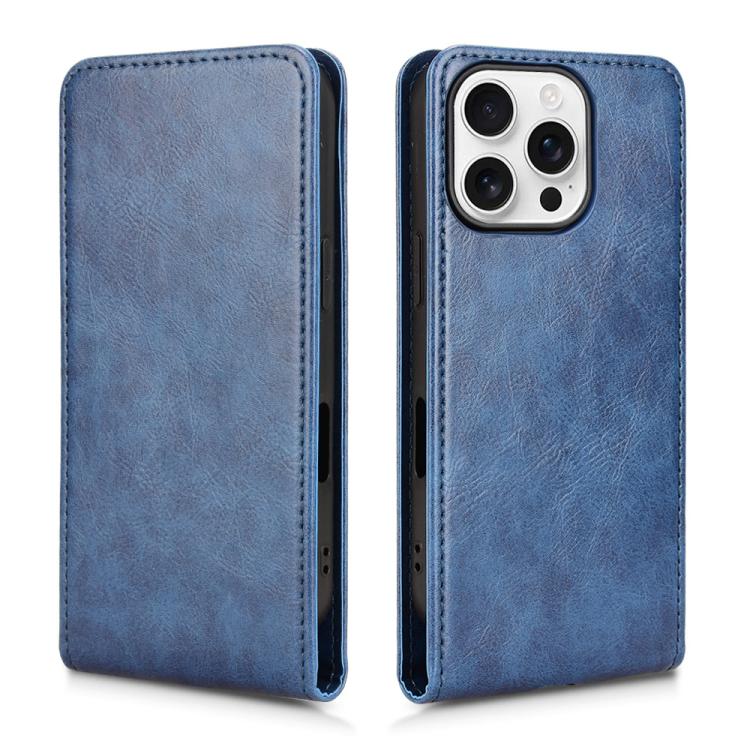 Funda de Cuero con Tapa Vertical Magnética para iPhone 16 Pro (Azul)