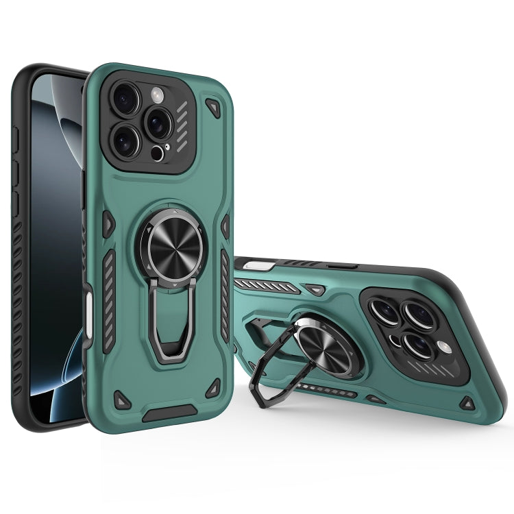 Funda para iPhone 16 Pro con Soporte Giratorio de Metal y Carcasa Magnética de TPU y PC (Verde)