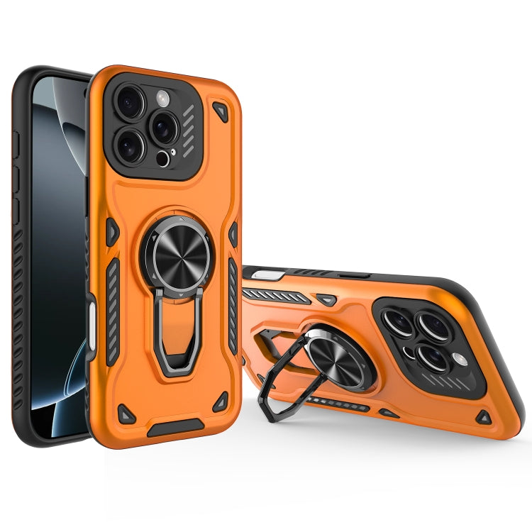 Funda para iPhone 16 Pro Soporte Giratorio Metal Carcasa Magnética TPU PC (Naranja)